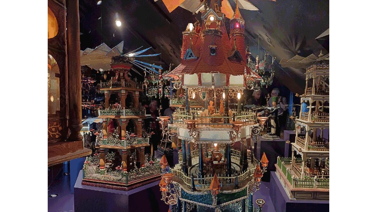 Die Manufaktur der Träume ist mehr als nur ein Museum – sie ist eine Einladung zum Staunen. In sanft beleuchteten Räumen entfaltet sich eine Welt aus Holz, Fantasie und jahrhundertealter Tradition. Miniaturen, darunter Räuchermänner, Nussknacker, Pyramiden, Schwibbögen, Spielzeuge und filigrane Schnitzarbeiten sind liebevoll geschnitzt und bemalt, erzählten Geschichten vom Weihnachtszauber, vom einfachen Leben der Bergleute und von kindlicher Vorstellungskraft. Die Sammlung von Erika Pohl-Ströher wirkt nicht museal, sondern lebendig – fast so, als würde man selbst wieder zum Kind, das mit leuchtenden Augen durch eine Schneekugelwelt wandert. Besonders berührend ist die Harmonie von Licht, Klang und Gestaltung – hier wird nicht nur ausgestellt, sondern erzählt und alles erlebbar gemacht.