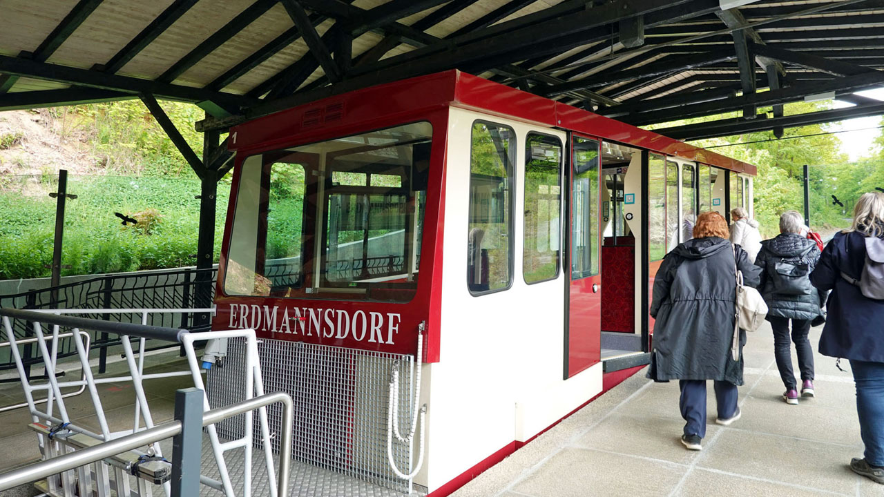 Anschließend bringt uns der Bus nach Cranzahl. Die Fahrt mit der Fichtelbergbahn steht bevor. Gezogen wird der nostalgische Zug von einer originalen Hartmann Lokomotive. Ein ganz besonderes Ereignis, die männlichen Teilnehmer der Reise sind begeistert und stehen mehr auf der Bühne als es sie auf den Sitzen hält. Nach einer Stunde kommen wir in Oberwiesenthal an.