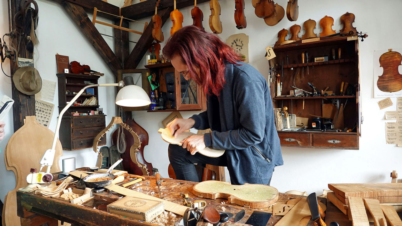 Wir besuchen die Erlebniswerkstatt für Geige und schauen den Geigenbauer Meister Julian Richter über die Schulter. Wir schnuppern Werkstattluft, blicken Sie hinter die Kulissen des Musikinstrumentenbaus und sind dabei, wenn hochwertige Instrumente mit Weltruf entstehen. Anfassen und Ausprobieren ist natürlich ausdrücklich erwünscht. Herr Richter führt vor und erläutert jeden Schritt bei der Herstellung. Ausführlich geht er auf die verwendeten Holzarten ein. Es ist unglaublich, wieviel Arbeit und welch hohe Kunst in die Herstellung einer Geige einfließt.
